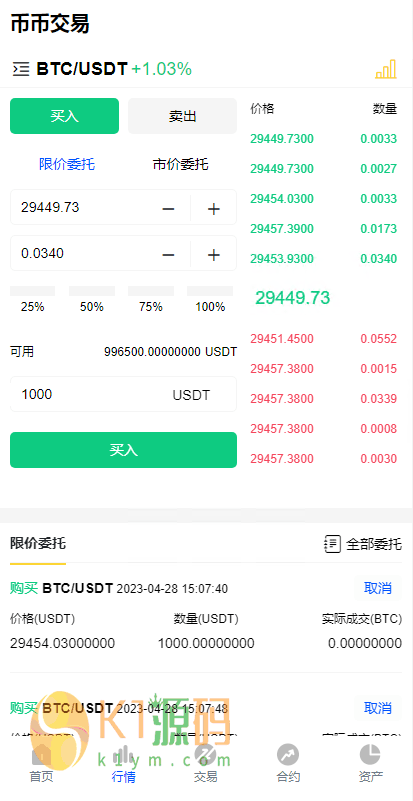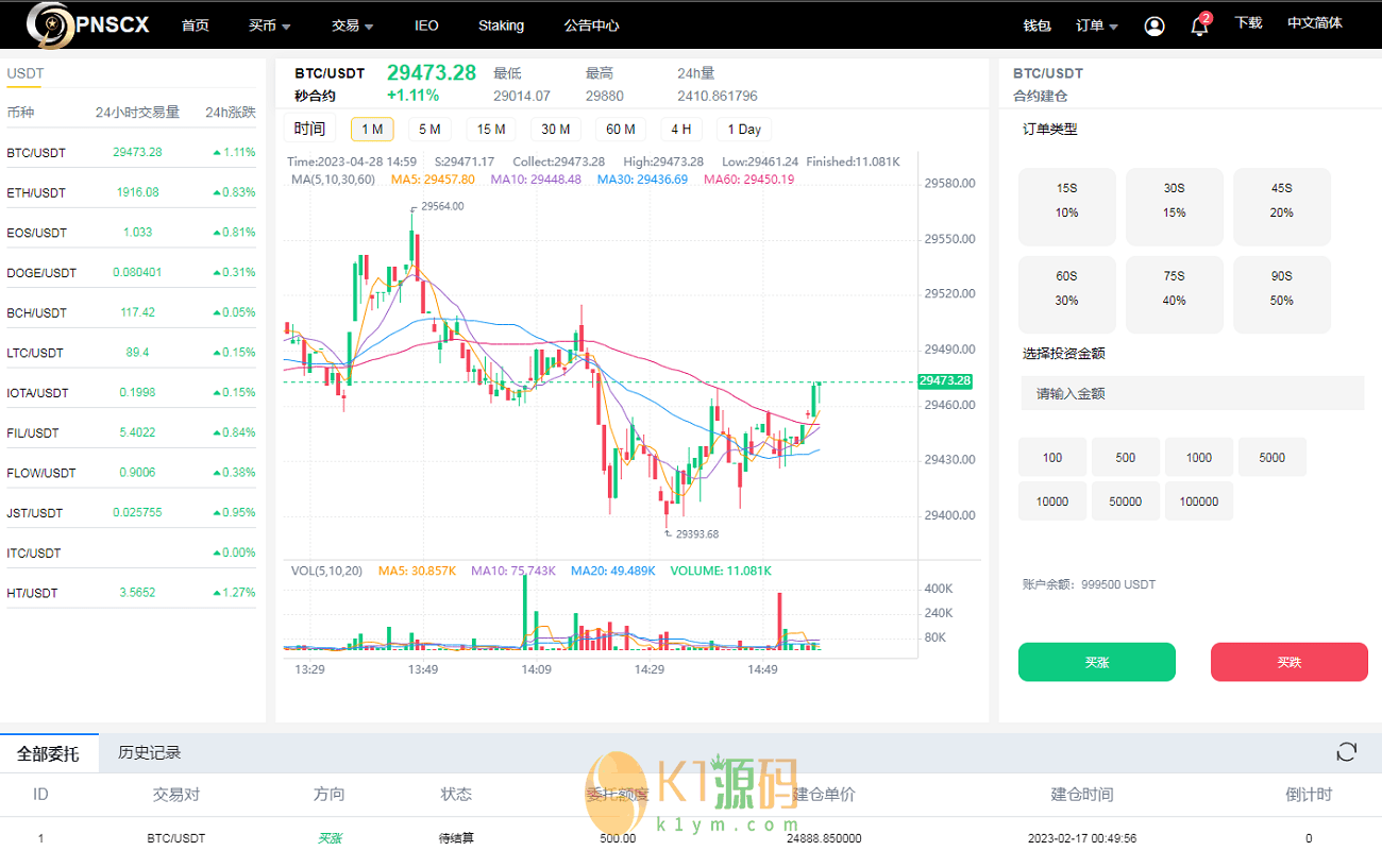 全开源代码白色UI界面虚拟币交易所系统源码,USDT/BTC加密货币交易所平台,虚拟币微交易币币合约交易