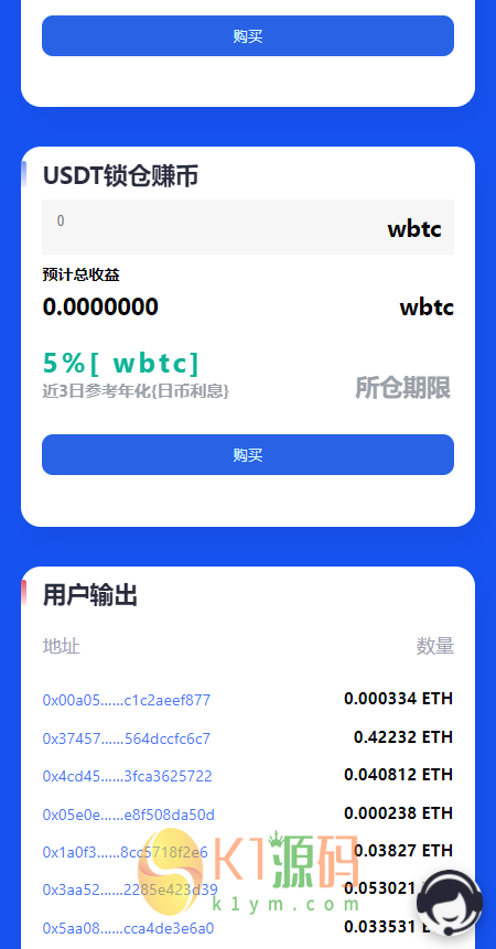 开源的一套多语言授权秒U挖矿源码 去年价值很高的一套东西 搬来给永久会员研究吧! 最近有人简单二开加了点新功能 实测授权调起正常 其他的就不研究了 谁有兴趣自己下载吧! 声明:本站所有文章,如无特殊说明或标注,均为本站原创发布。任何个人或组织,在未征得本站同意时,禁止复制、盗用、采集、发布本站内容到任何网站、书籍等各类媒体平台。如若本站内容侵犯了原著者的合法权益,可联系我们进行处理。