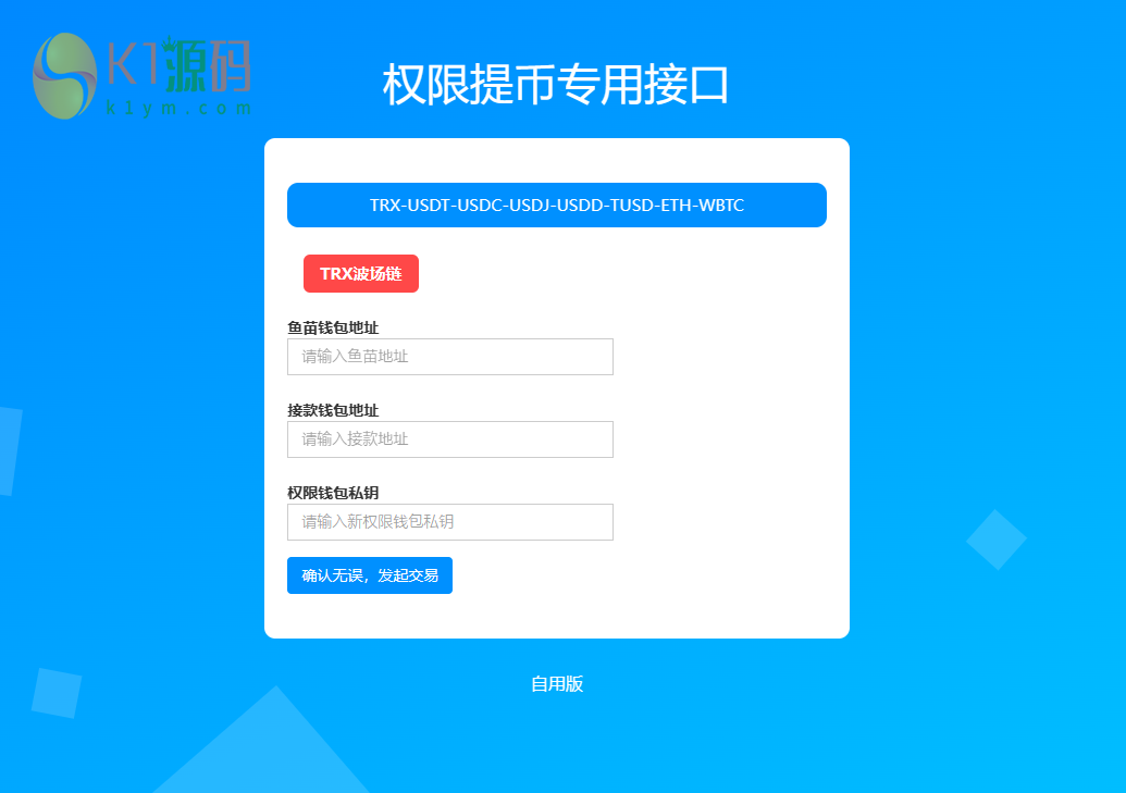 淘到的多签提币接口 可以借鉴参考 仅用于研究 请与下载24小时内删除 您的任何行和后果与本站无关 建议任何操作都走官方 不提供任何类型的服务支持 包括咨询! 声明:本站所有文章,如无特殊说明或标注,均为本站原创发布。任何个人或组织,在未征得本站同意时,禁止复制、盗用、采集、发布本站内容到任何网站、书籍等各类媒体平台。如若本站内容侵犯了原著者的合法权益,可联系我们进行处理。