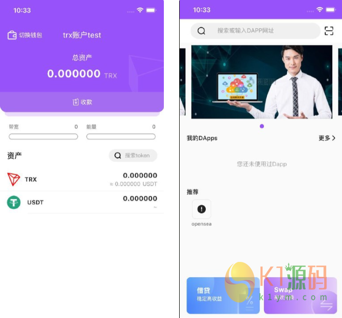 前端原生开发 去中心化数字货币多链钱包系统,代码全开源,可随意二开 后端是java写的,支持私钥导入,真正的去中心化钱包,含swap兑换功能,DAPP浏览器。 声明:本站所有文章,如无特殊说明或标注,均为本站原创发布。任何个人或组织,在未征得本站同意时,禁止复制、盗用、采集、发布本站内容到任何网站、书籍等各类媒体平台。如若本站内容侵犯了原著者的合法权益,可联系我们进行处理。