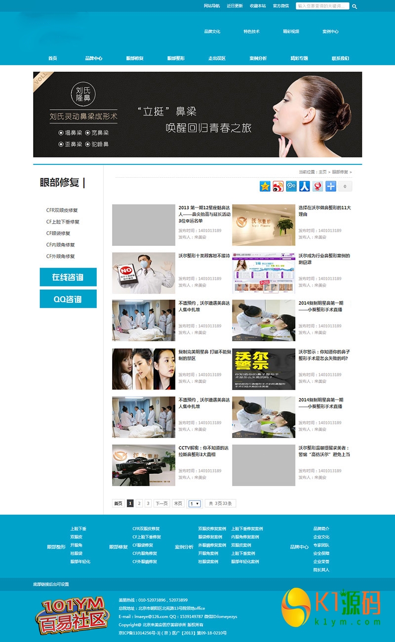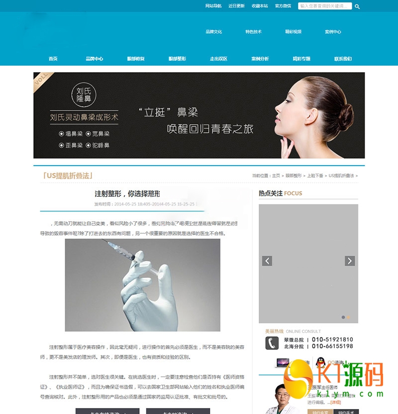 蓝色整形医院网站源码 医疗美容类网站织梦模板