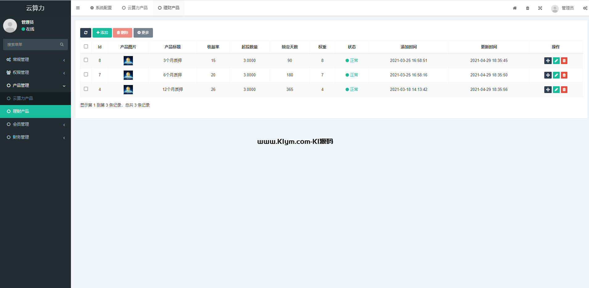 后台自行添加售卖矿机/云算力 参数和收益比率和详情说明