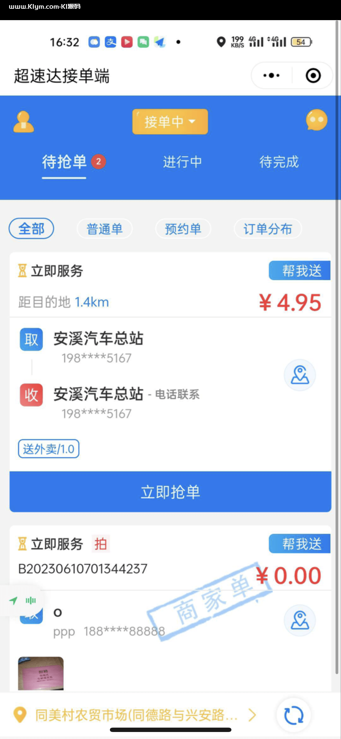 码科同城跑腿独立版1.5.7用户端+骑手端 这个是是独立版哦,不是微擎的 此源码搭建有点复杂,只要一步错就会导致骑手端来单没有声音提示. 多的也不介绍了,不知道的朋友可以百度一下码科跑腿就知道了! 声明:本站所有文章,如无特殊说明或标注,均为本站原创发布。任何个人或组织,在未征得本站同意时,禁止复制、盗用、采集、发布本站内容到任何网站、书籍等各类媒体平台。如若本站内容侵犯了原著者的合法权益,可联系我们进行处理。