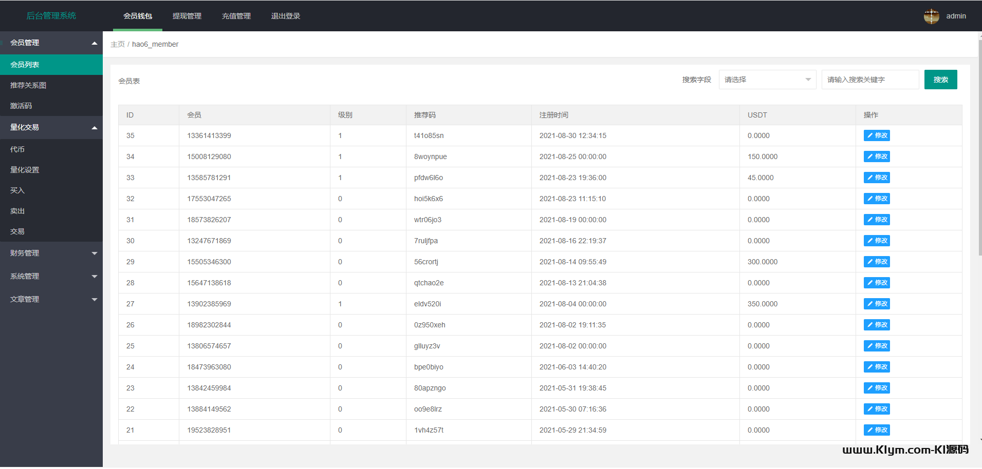 本系统目前默认使用TRC20-USDT充提,也可改成ERC20-USDT等