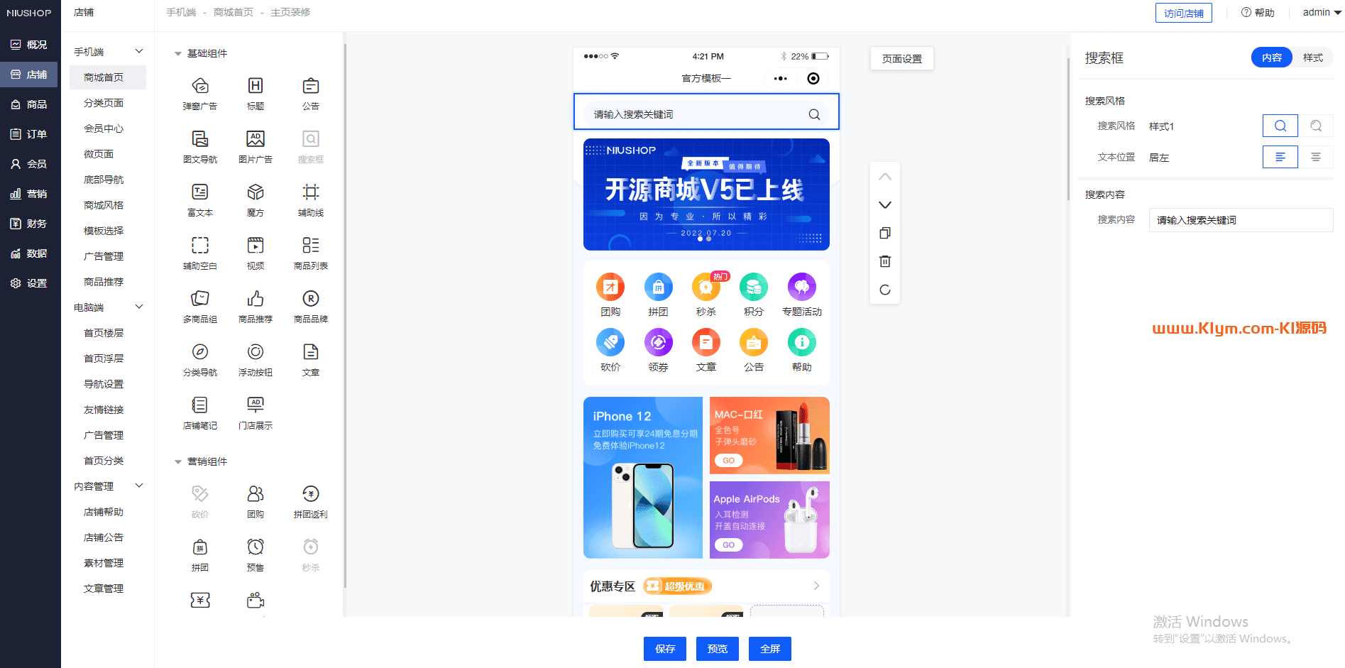 Niushop 系统是一款采用 ThinkPHP6 框架开发的完善电商系统。它具备强大的功能和安全便捷的特性, 同时也提供了稳定可靠的框架,方便进行系统的扩展。该系统的源码是100%开源的,支持二次开发和定制, 使企业能够以更低的成本、更少的人力和更快的速度构建自己的商城,并开展在线销售业务。 Niushop 系统拥有完善的商品机制,包括普通商品和虚拟商品,并且针对虚拟商品还设计了完善的核销机制。 此外,系统还支持新时代的商业模式,如拼团、分销和多门店砍价等营销活动。配送方式方面,系统支持物流配送、 门店自提和本地配送等多种方式。除了以上功能,系统还整合了当前电商系统的各种营销和商业方案,为商家提供全方位的解决方案。