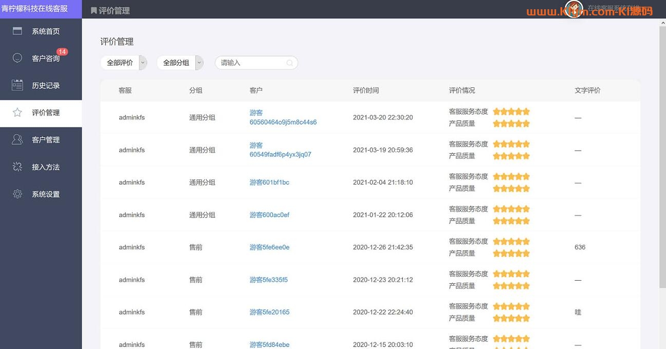 php客服在线IM源码,支持自动刷新(网页即时接收消息)+自动回复+可生成接入+手机版管理后台:弹窗接入,微信公众号接入,网页链接接入。