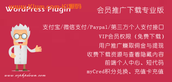 会员推广下载专业版 WordPress插件(erphpdown)是模板兔开发的一款针对虚拟资源收费下载/付费下载/收费查看/付费查看/VIP下载查看的插件,经过完美测试运行于wordpress 3.x-5.x版本。后续模板兔会增加更多实用的功能。 模板兔已针对此插件开发了一个前端用户中心,基本适用于任何主题(不排除有的主题使用错位的可能),此前端个人中心页面模板免费赠送。本插件无域名限制。