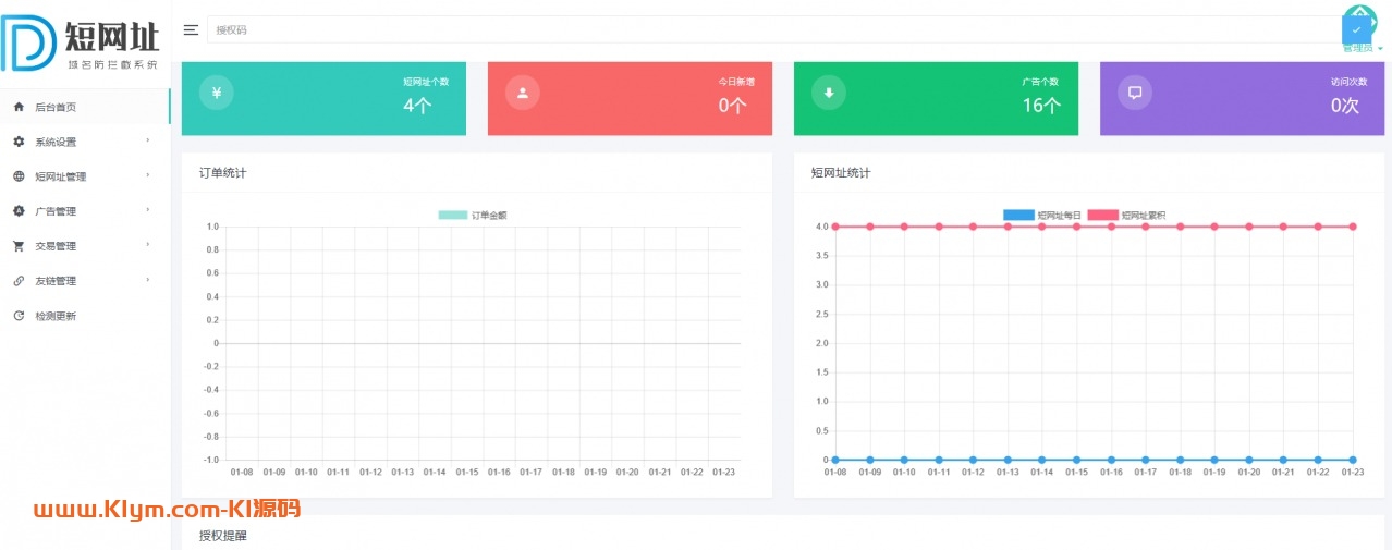 4.后台可统计短网址个数/广告个数/访问次数/每日收入图表等信息。