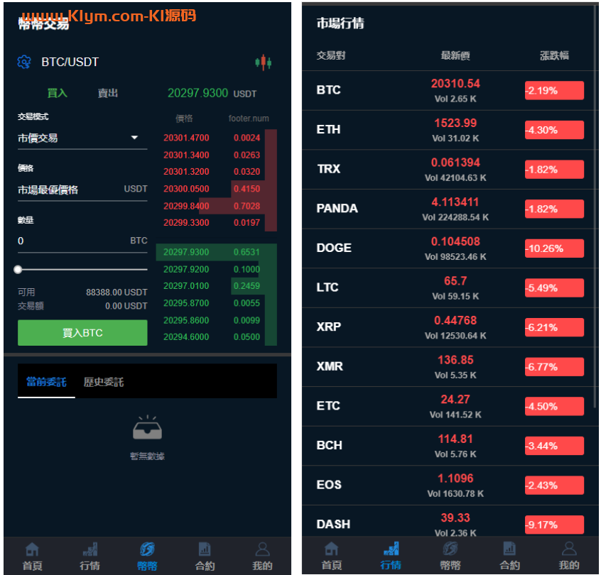此套算很完整的一套多语言交易所了,手机电脑端都是vue源码 币币交易、秒合约交易、锁仓质押、IEO认购、平台币预生成K线(完整机器人) 另新增了后台设置充币地址等新功能,附带完整搭建教程 声明:本站所有文章,如无特殊说明或标注,均为本站原创发布。任何个人或组织,在未征得本站同意时,禁止复制、盗用、采集、发布本站内容到任何网站、书籍等各类媒体平台。如若本站内容侵犯了原著者的合法权益,可联系我们进行处理。