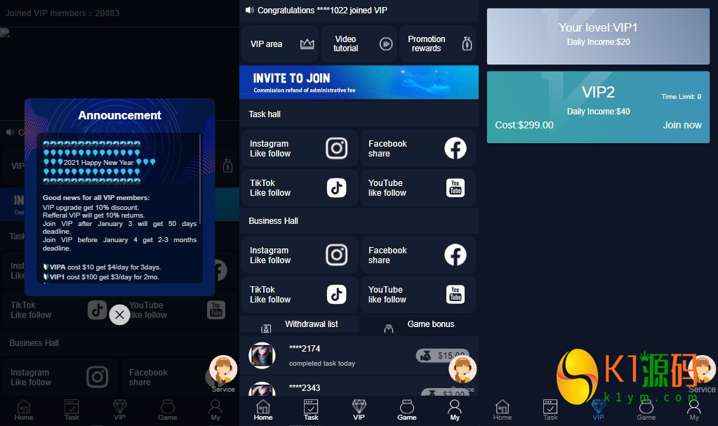 某站卖3800元的【国际任务平台】英文版/带两个小游戏/国际版任务平台/抖音分享点赞任务平台源码。 源码里已经自带了搭建教程。 源码有独立代理后台,单语言英文版!区别于市场上所有的点赞源码,内嵌了2个小游戏,一个愤怒的小鸟,一个搅珠,增加了源码的趣味性。 声明:本站所有文章,如无特殊说明或标注,均为本站原创发布。任何个人或组织,在未征得本站同意时,禁止复制、盗用、采集、发布本站内容到任何网站、书籍等各类媒体平台。如若本站内容侵犯了原著者的合法权益,可联系我们进行处理。