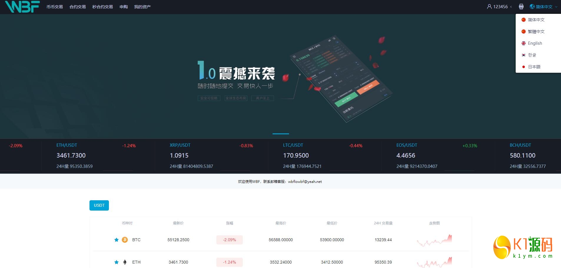 最新申购/自发币平台币/币币/法币/杠杆/合约多语言交易所/附带pc和手机VUE/附带完整教程,可二开
