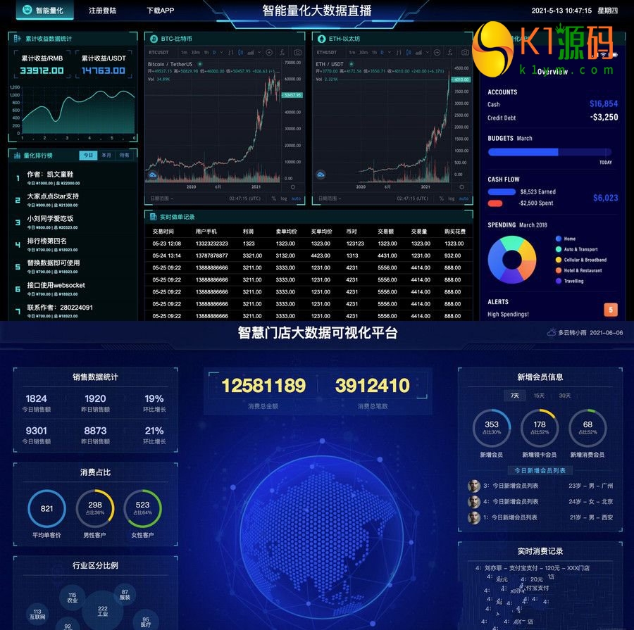 图表分析网页模版 大数据可视化大屏电子沙盘合集,项目基于html/css/js,包含行业: