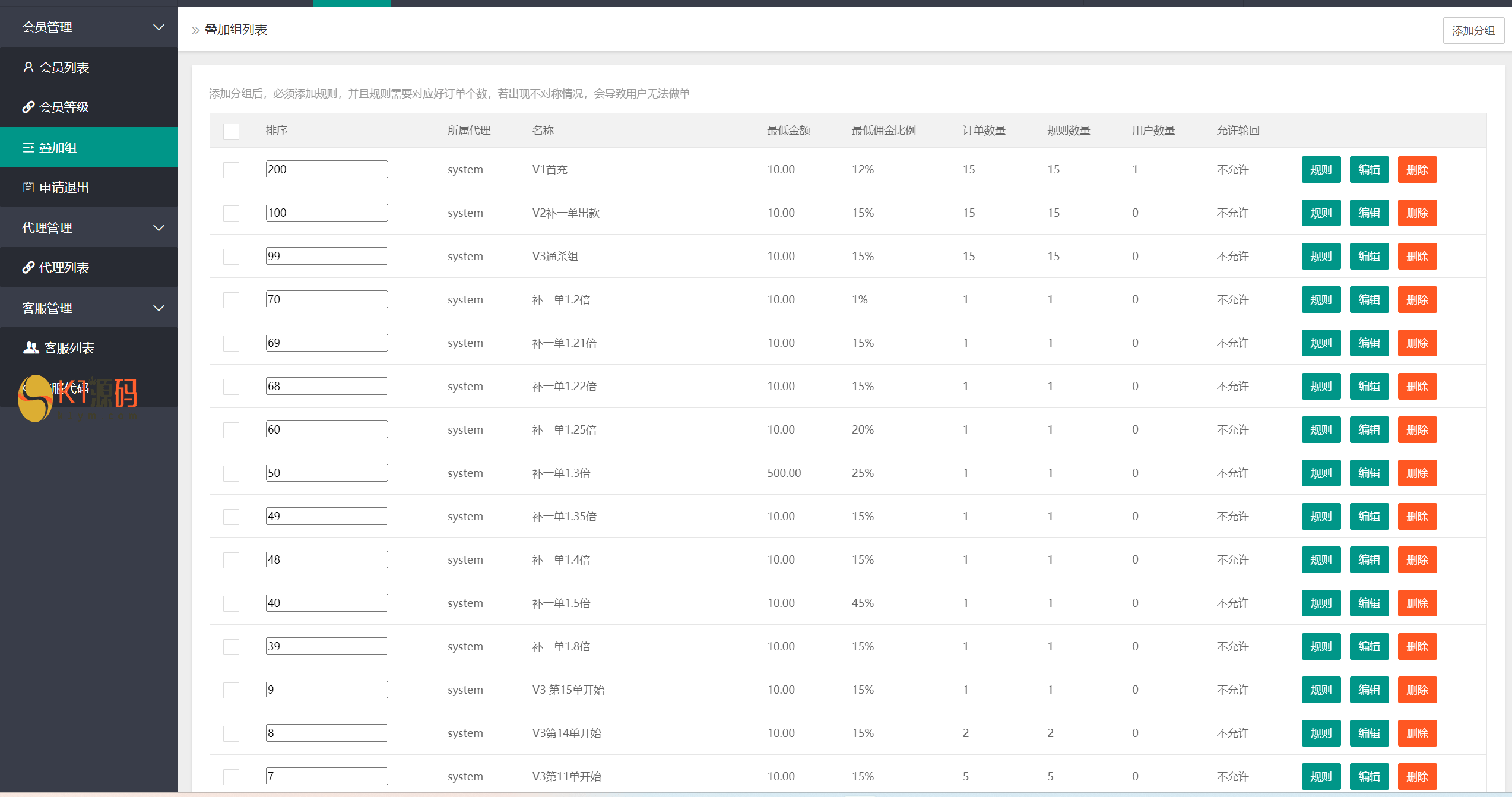 此套别人二开的海外抢单刷单系统,新增用户风险值、最后做单时间 带三级分销,权限代理后台,充值提现优先完美后台查询功能 声明:本站所有文章,如无特殊说明或标注,均为本站原创发布。任何个人或组织,在未征得本站同意时,禁止复制、盗用、采集、发布本站内容到任何网站、书籍等各类媒体平台。如若本站内容侵犯了原著者的合法权益,可联系我们进行处理。