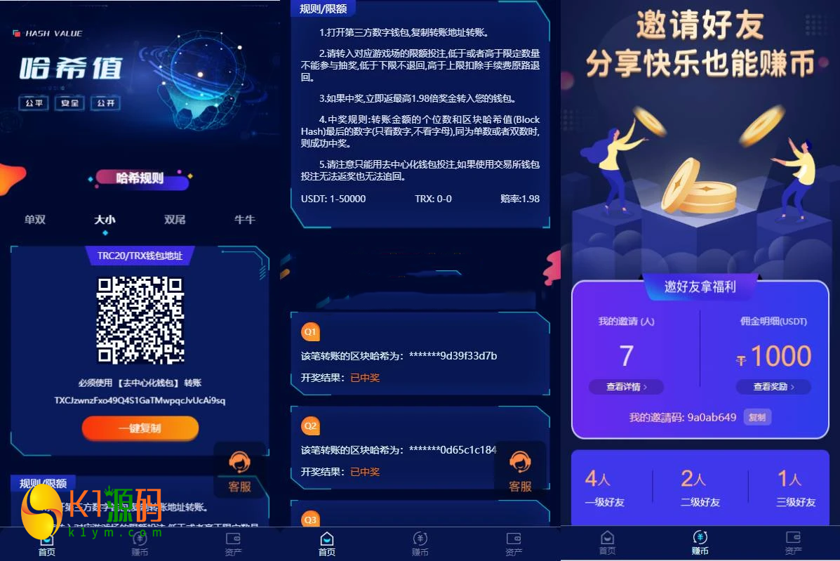 前端vue源码,后端FastAdmin框架,跟正常哈希没什么区别,这个是usdt/trx双玩法的 声明:本站所有文章,如无特殊说明或标注,均为本站原创发布。任何个人或组织,在未征得本站同意时,禁止复制、盗用、采集、发布本站内容到任何网站、书籍等各类媒体平台。如若本站内容侵犯了原著者的合法权益,可联系我们进行处理。