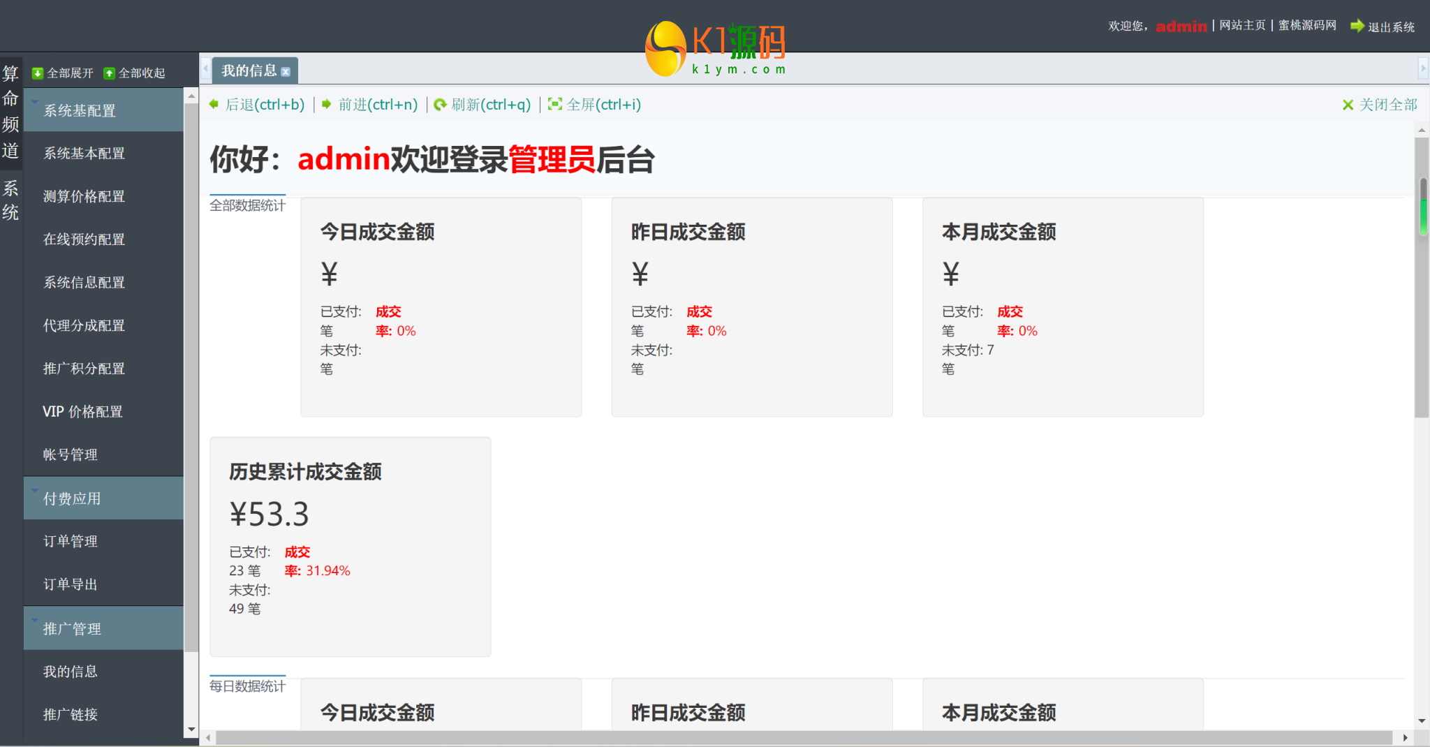 支持功能:微信/支付宝的PC支付和H5支付、分销功能、支持设置一二级分成比例、微信功能、
