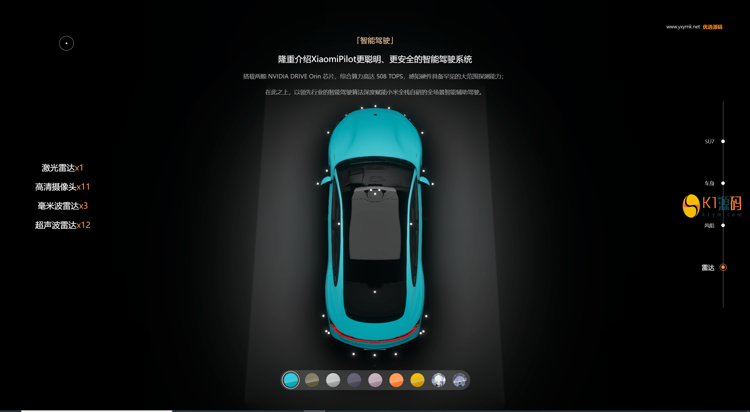 响应式小米汽车su7全色系展示html源码, 小米su7在线体验网站小米SU7第三方演示网站源码纯HTML,直接将压缩包上传网站目录解压即可。 源码截图: 声明:本站所有文章,如无特殊说明或标注,均为本站原创发布。任何个人或组织,在未征得本站同意时,禁止复制、盗用、采集、发布本站内容到任何网站、书籍等各类媒体平台。如若本站内容侵犯了原著者的合法权益,可联系我们进行处理。