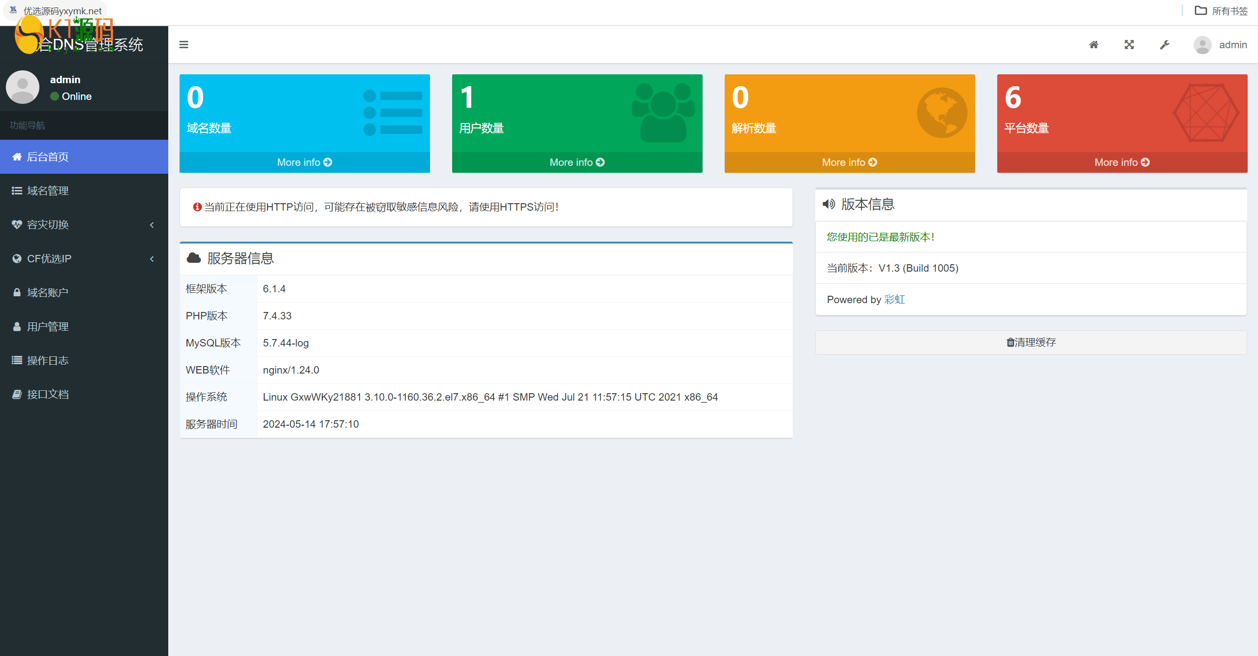 彩虹聚合二级域名DNS管理系统源码v1.3+搭建教程,可以实现在一个网站内管理多个平台的域名解析,