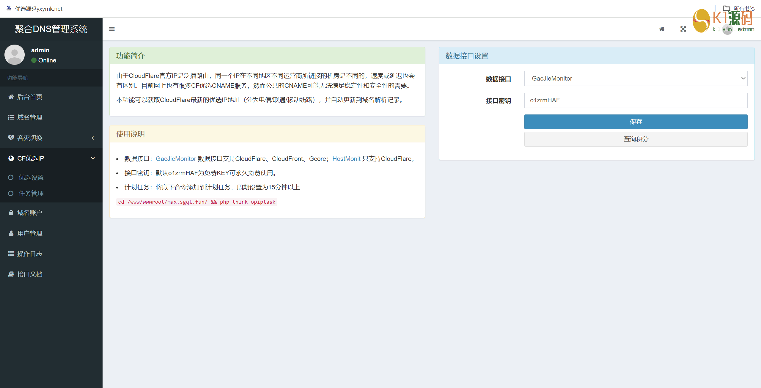 本系统支持多用户,每个用户可分配不同的域名解析权限;支持API接口,