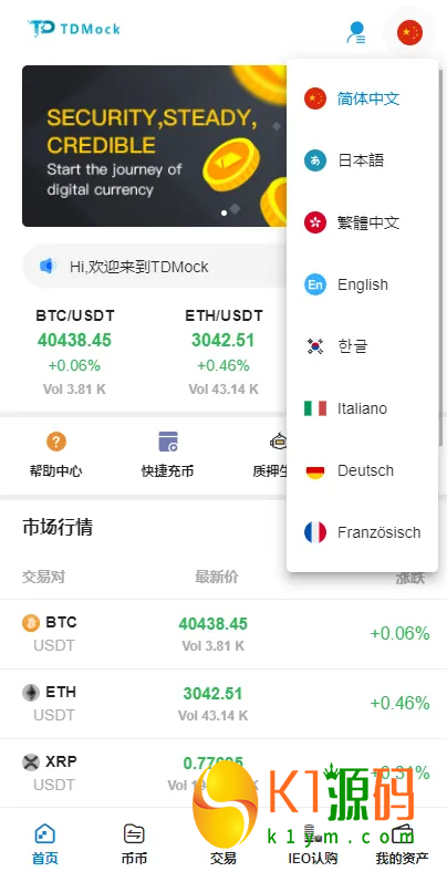 区块链源码 海外多语言交易所新UI多语言海外交易所/永续合约/秒合约/锁仓挖矿/前端uniapp 手机前端uniapp带多语言,后端PHP的laravel框架 源码全开源带前端源... 1 年前 0 0 343