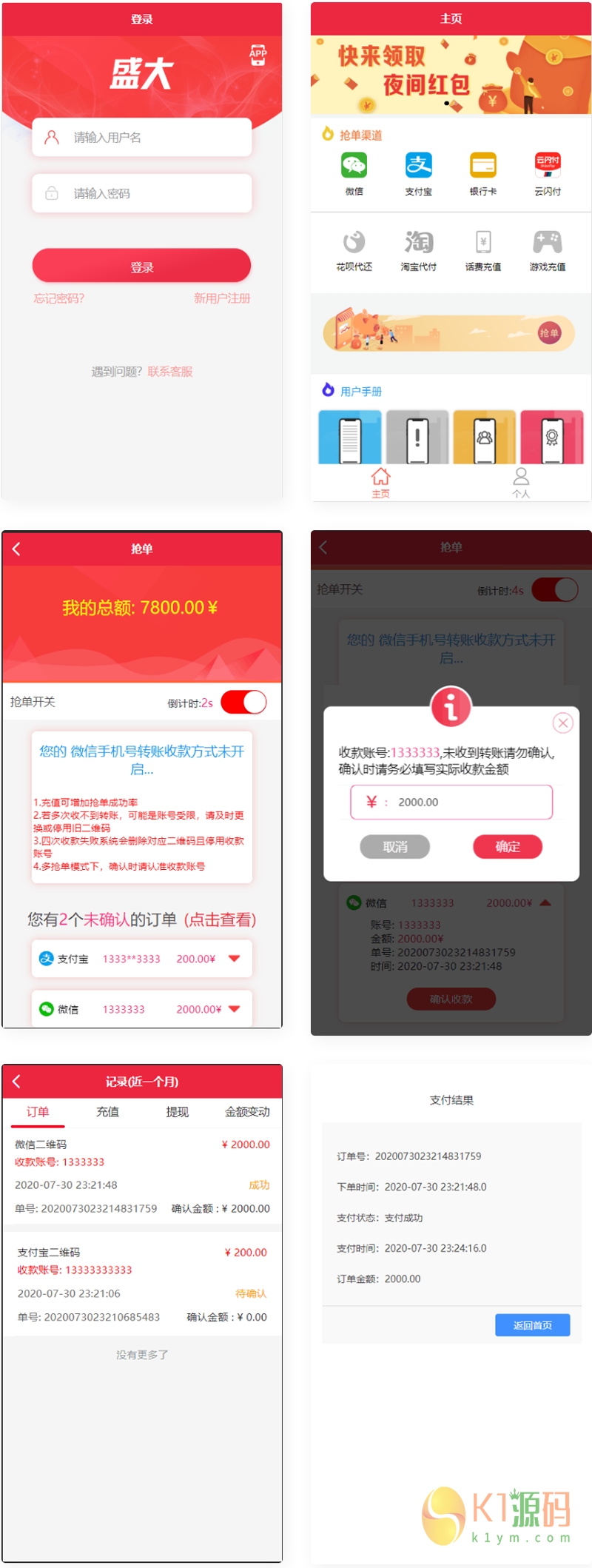 最新盛大支付系统源码 多功能完美运营微信+支付宝+银行卡+云闪付+抢单系统跑分系统源码+完整数据