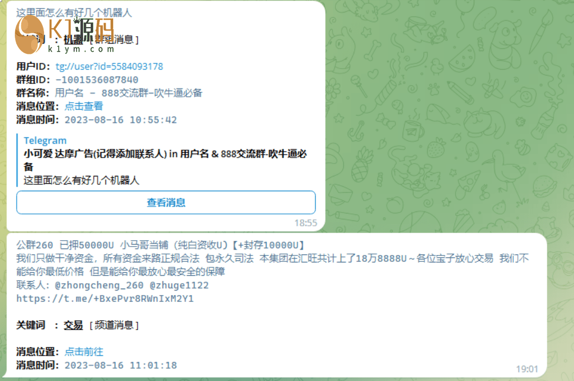 当你在群里聊天或者发送某个关键词,然后突然就有人私聊你 这就是他有其它号在群里(N个群或频道) 监听了消息, 当你发送的内容中可能有某个关键词 就会通知他,他就用其它号私聊你了(拉人 营销神器) 普号实现别人无法发现你,也不知道群里那个号才是你的监听号(拿你没办法) 声明:本站所有文章,如无特殊说明或标注,均为本站原创发布。任何个人或组织,在未征得本站同意时,禁止复制、盗用、采集、发布本站内容到任何网站、书籍等各类媒体平台。如若本站内容侵犯了原著者的合法权益,可联系我们进行处理。