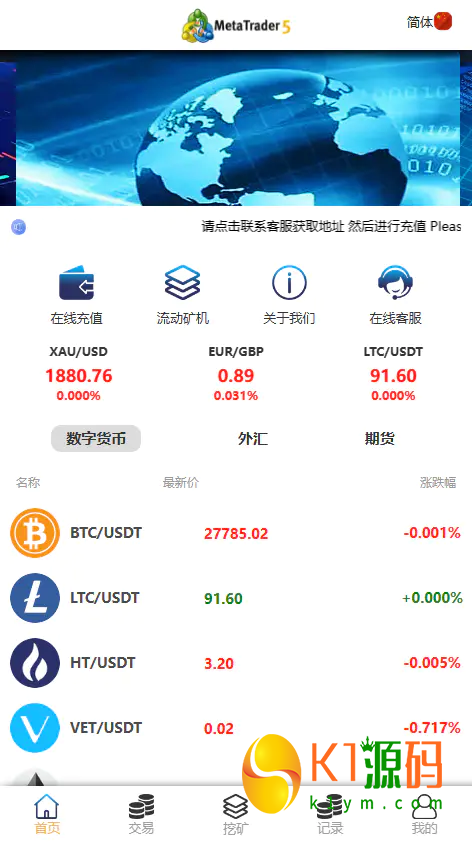 ST5,MT5,多语言,虚拟币,外汇,期货,挖矿,微盘,微交易,系统,源码 k线 波动等都正常 不懂这些东西 具体功能谁有兴趣谁研究吧! 声明:本站所有文章,如无特殊说明或标注,均为本站原创发布。任何个人或组织,在未征得本站同意时,禁止复制、盗用、采集、发布本站内容到任何网站、书籍等各类媒体平台。如若本站内容侵犯了原著者的合法权益,可联系我们进行处理。