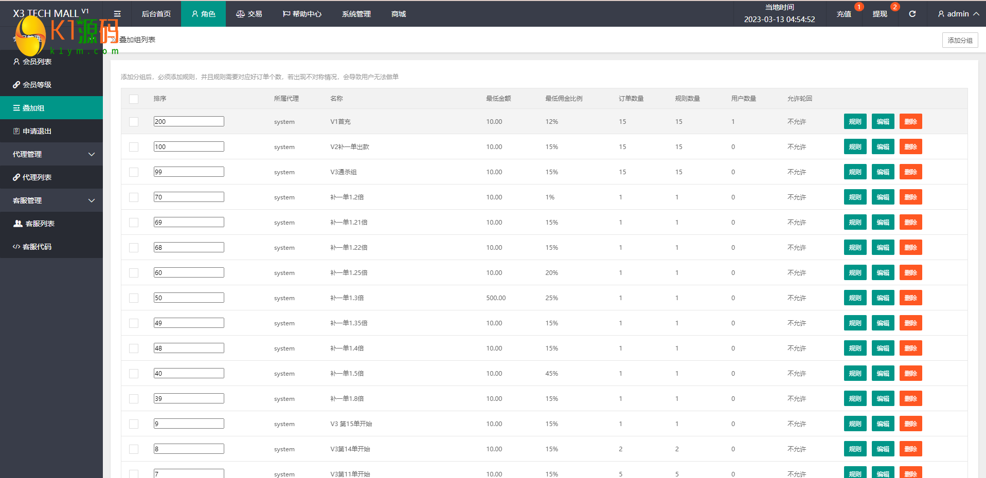 此套别人二开的海外抢单刷单系统,新增用户风险值、最后做单时间 带三级分销,权限代理后台,充值提现优先完美后台查询功能 声明:本站所有文章,如无特殊说明或标注,均为本站原创发布。任何个人或组织,在未征得本站同意时,禁止复制、盗用、采集、发布本站内容到任何网站、书籍等各类媒体平台。如若本站内容侵犯了原著者的合法权益,可联系我们进行处理。
