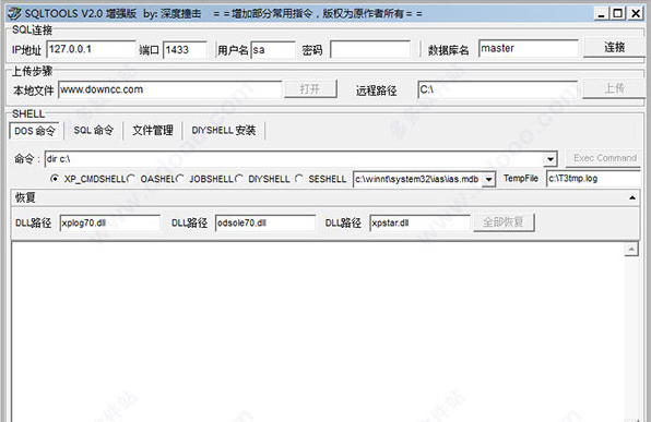 4、软件提供了多种管理模式,您可以选择dos命令、SQL命令、文件管理、DIYshell安装