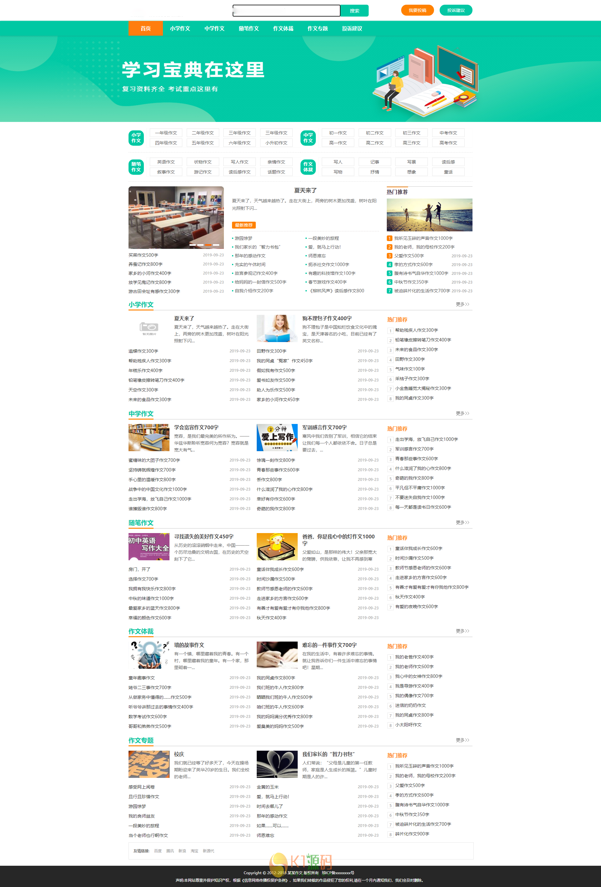 易优 CMS 精美简洁作文范文网站模板,资讯类企业网站模板,适用于博客、文章、资讯类网站使用。模板自带 eyoucms 内核,无需再下载 eyou 系统。