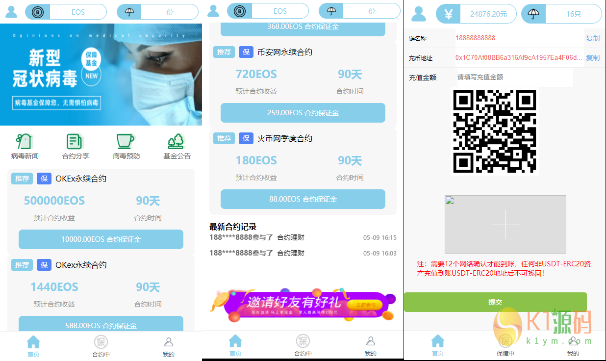 二开USDT理财投资源码下载之前投资理财程序进行了二开。界面改成了新冠主题。需要的拿去研究吧参考吧! 源码截图: 声明:本站所有文章,如无特殊说明或标注,均为本站原创发布。任何个人或组织,在未征得本站同意时,禁止复制、盗用、采集、发布本站内容到任何网站、书籍等各类媒体平台。如若本站内容侵犯了原著者的合法权益,可联系我们进行处理。