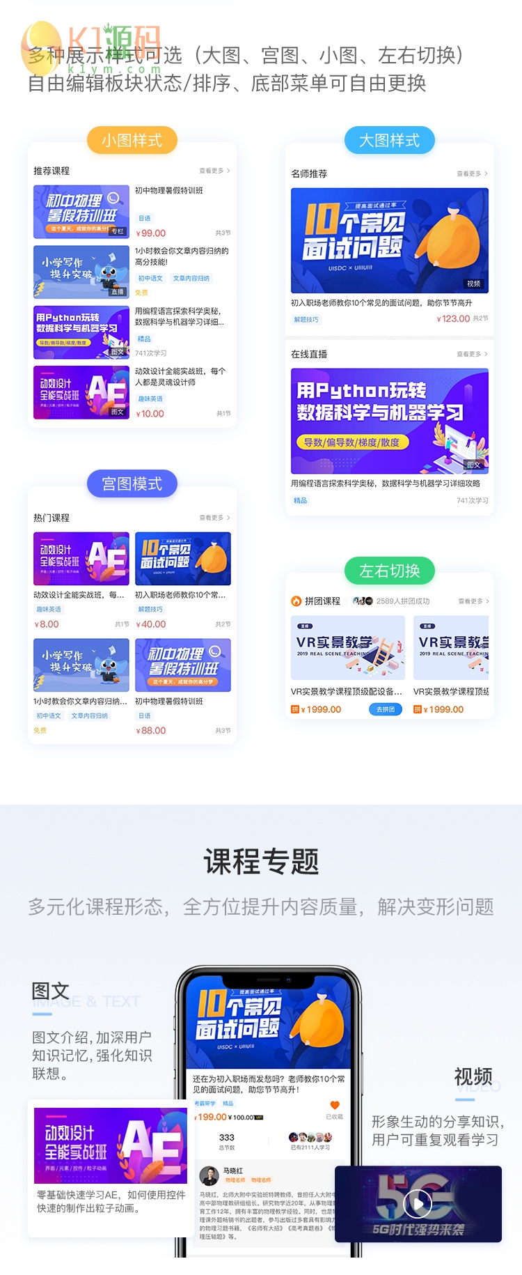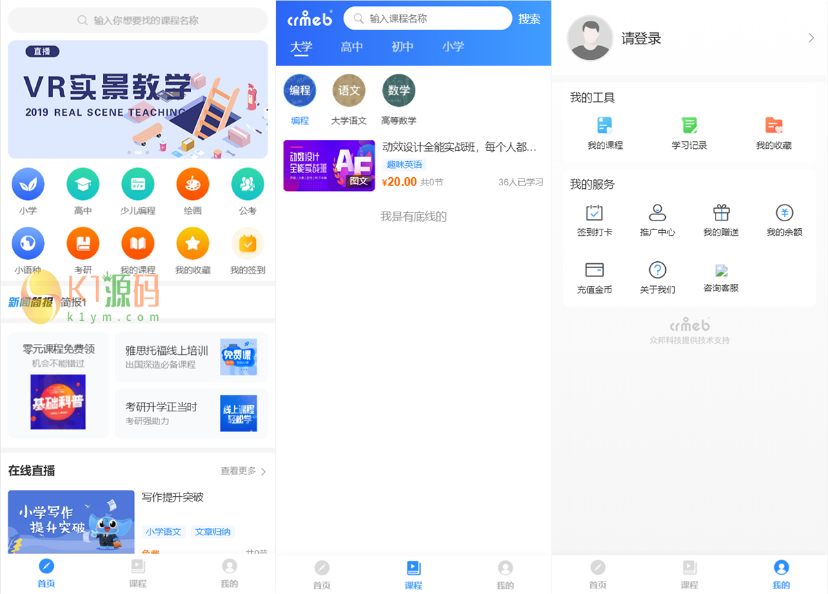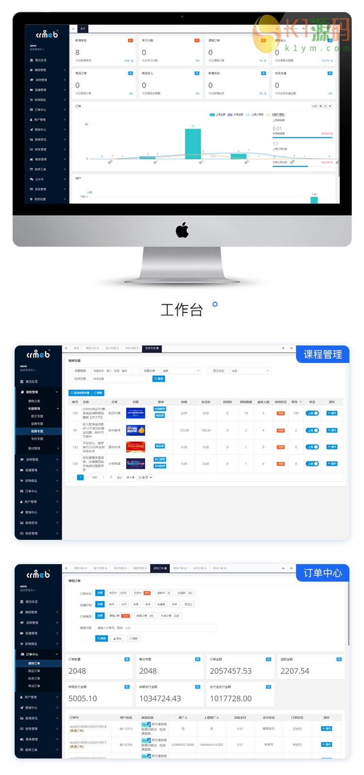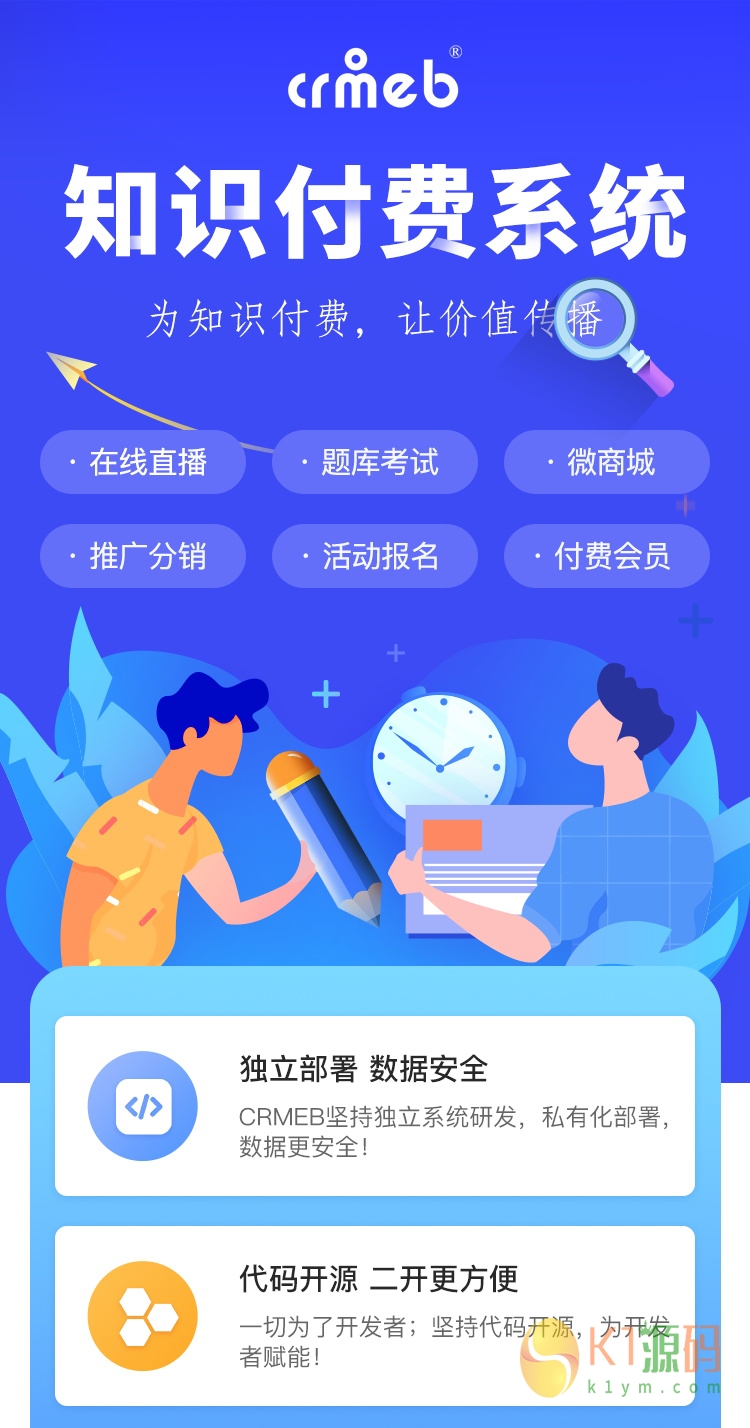 CRMEB知识付费系统其主要由课程系统、分销推广、付费会员、营销活动、支付、客服系统、文章管理、登录注册,微信模板消息通知等九大功能模块构成,囊括了在线教育及知识付费的大部分主要功能,支持在线推流直播、直播回放功能、录播功能、图文专题、音频专题、课程弹幕等重要基础功能,其源码全开源,无加密,完全适合企业二次开发。