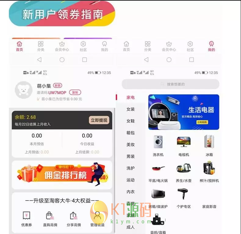 11、内置教程:可在后台加入营销素材,推广素材,自定义设置新手教程,视频教程,淘客商学院等。