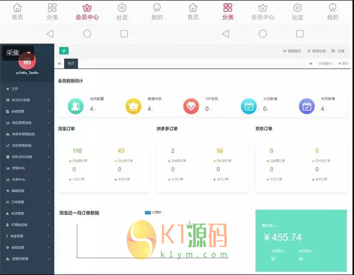 6、团队数据报表:会员数UV/PV统计,订单明细,收益明细等数据统计