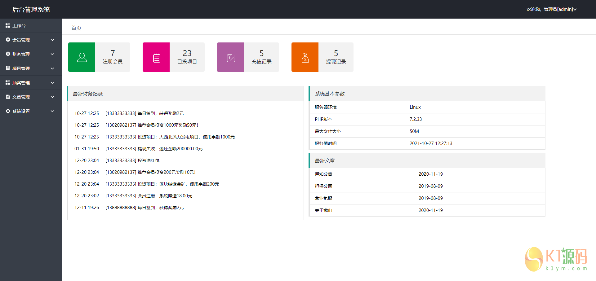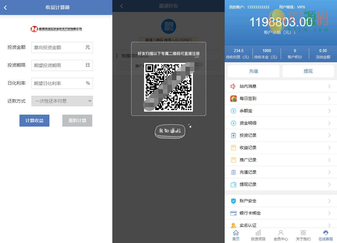 8.自动分红页面地址(需24小时一直打开):你的域名/index.php?s=/Handle/jiesuan