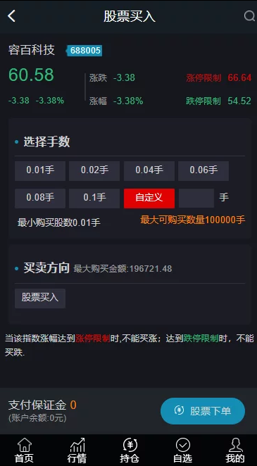 单向交易两融运营版这个是客户给人定制的版本,全部的功能,一个功能一个功能过的,没有任何问题了。单向交易,只买涨,涨停后仍可继续交易的版本。截图是修改过的部分,不是正常的两融,一对比就看出来了。这个比较冷门,但是遇到需要的用户,价格你们懂得。东西如下图:
