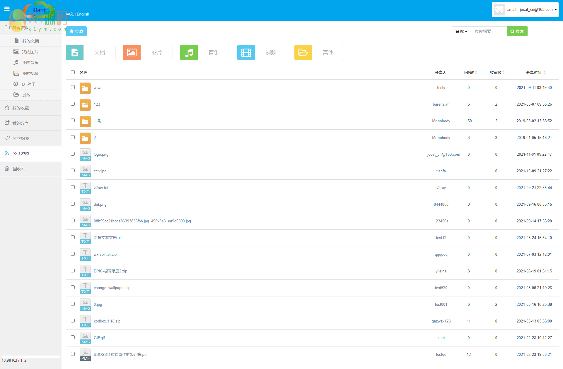 iBarn是一个先进的网盘系统,提供文件的网络备份,同步和分享服务。支持断点续传,秒传等功能。