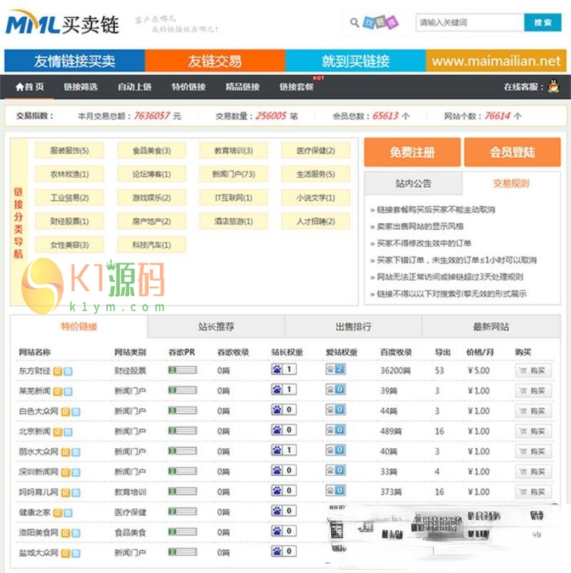 Thinkphp友链交易买卖平台源码 仿Alivv友链平台源码 友链买卖系统