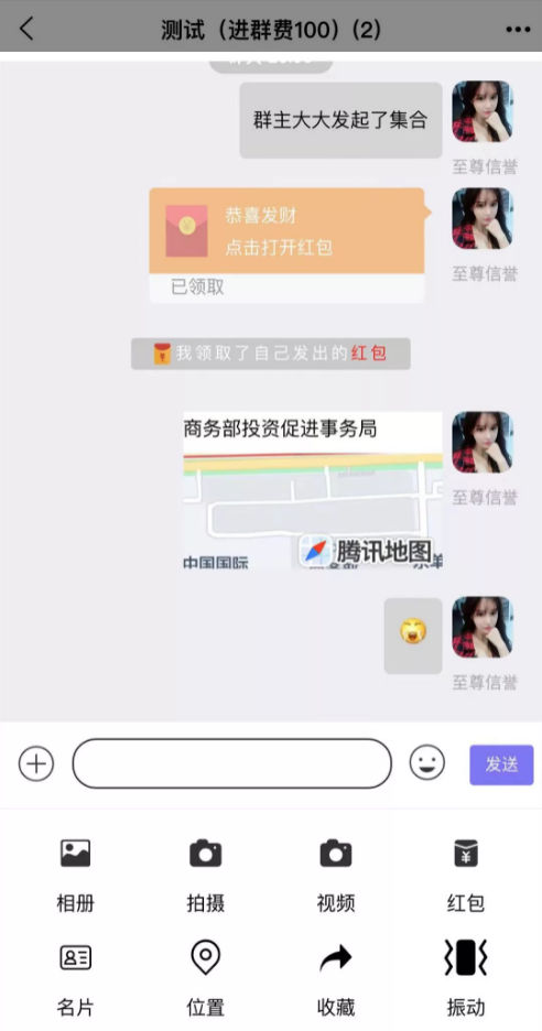 支持发送 图片 视频 表情包 发红包