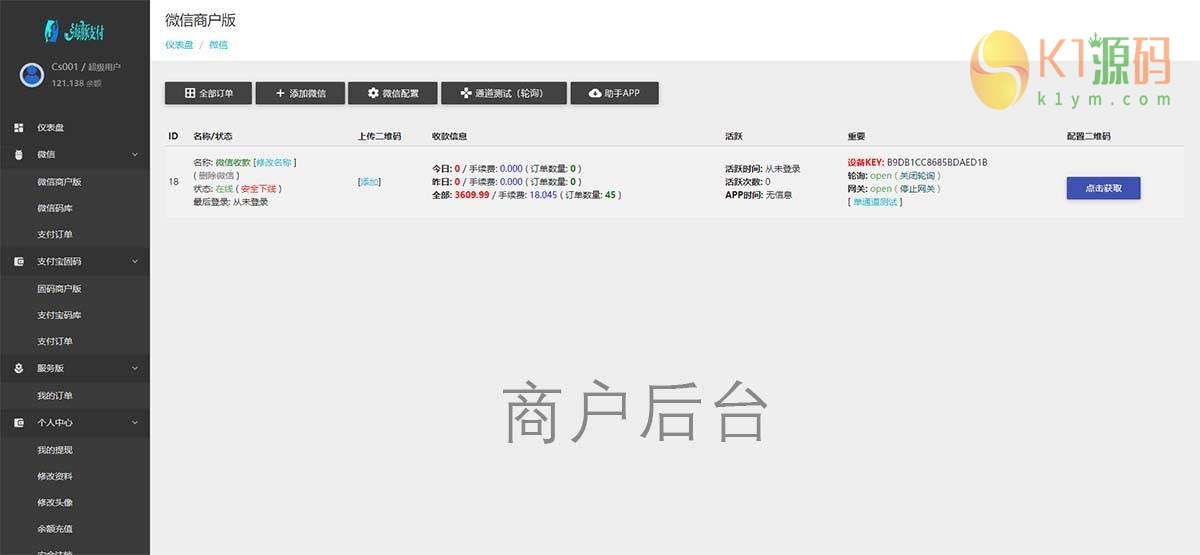 源码说明: 海豚支付(绿色支付pay v 6.0)系统源码/APP监控支付系统/个码免签跑分系统/扫码支付系统源码,是一套价值2.5万的支付系统,可实现微信、支付宝在线免签约收款实时到账的功能。 源码截图: 声明:本站所有文章,如无特殊说明或标注,均为本站原创发布。任何个人或组织,在未征得本站同意时,禁止复制、盗用、采集、发布本站内容到任何网站、书籍等各类媒体平台。如若本站内容侵犯了原著者的合法权益,可联系我们进行处理。