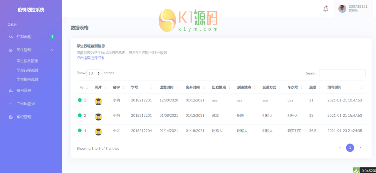 thinkphp6.0框架开发,校园疫情防控进出登记管理系统源码,功能齐全,帮助校园疫情防控,当然也可以应用各种场景。