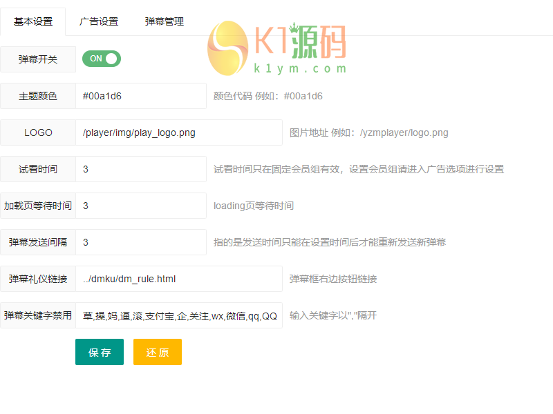 如何显示弹幕规则:player/index.php第 12 行删除【,.dmrules】就显示了