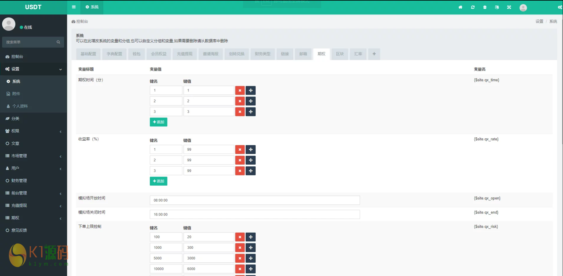 搜集到的资源,自己测试了下,发现这个东西还真的是不少问题,FastAdmin的后台,安装引导文件弄的乱糟糟,安装还是有一定难度,并不只是K线接口失效那么简单。现在分享出来,感兴趣的自己修下吧,毕竟这个UI做的还是不错的。也就只有UI不错了…以下的图是他正常状态时的样子,不正常状态什么样?你装起来就知道了。东西如下图: