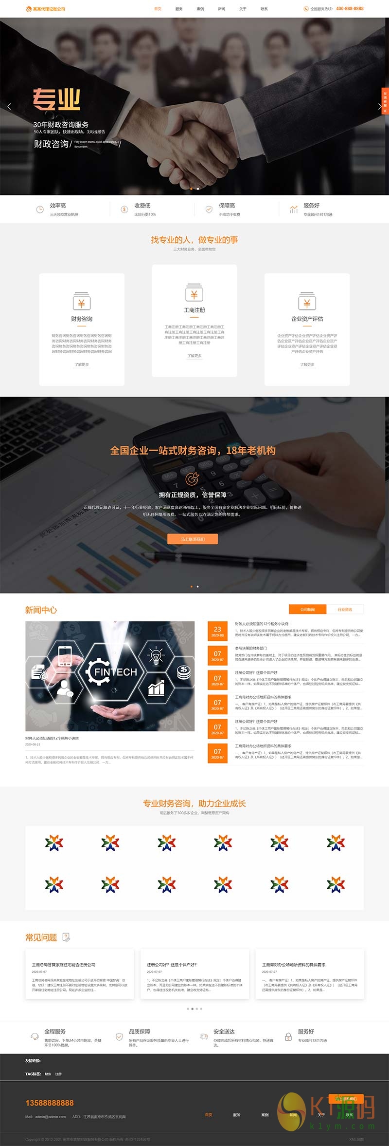 该模板适用于代理记账、财务会计等企业,当然其他行业也可以做,只需要把文字图片换成其他行业的即可;响应式,同一个后台,