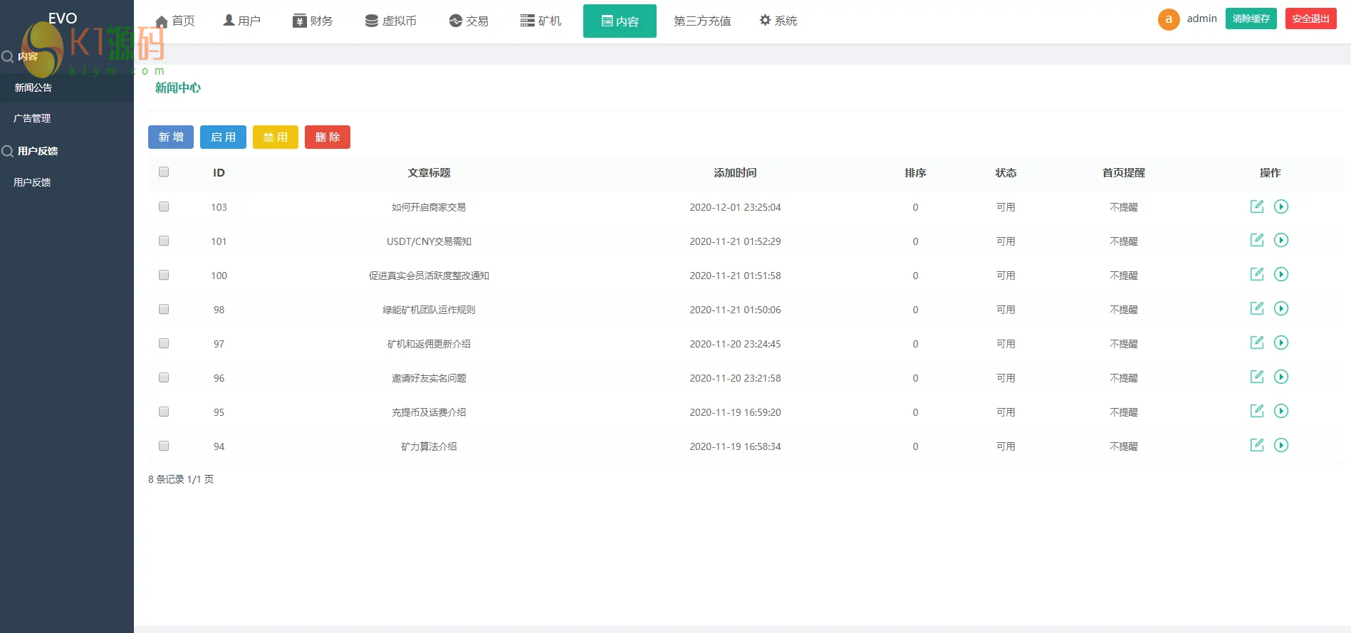VIP 区块链源码 【CBT云矿机区块源码】全新灰色UI版本+矿机CBT+MTC释放源码+挖矿矿池云矿机平台游戏OTC 源码介绍: 1.后台团队树形图 2.增加交易云信用积分 3.增加三网验证(和短信... 4 年前 0 0 1.2K