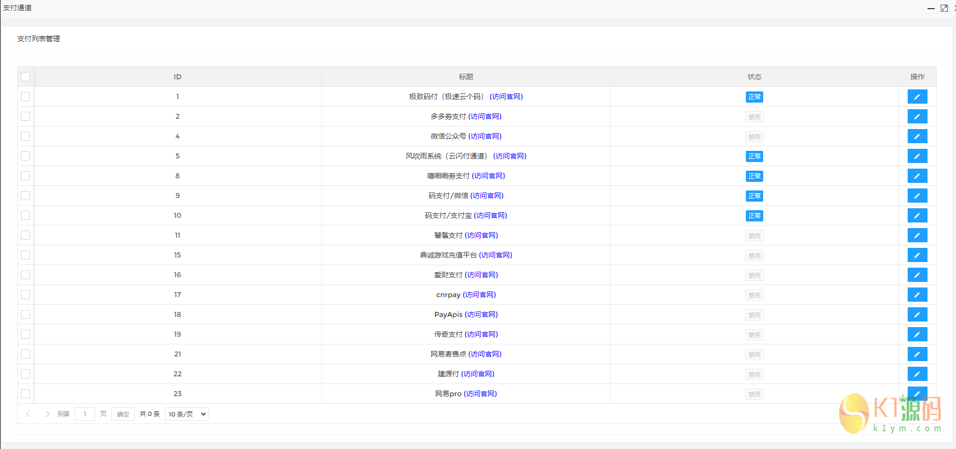 6、系统自带市面上常用的支付接口,一键配置,也可以增加新接口;