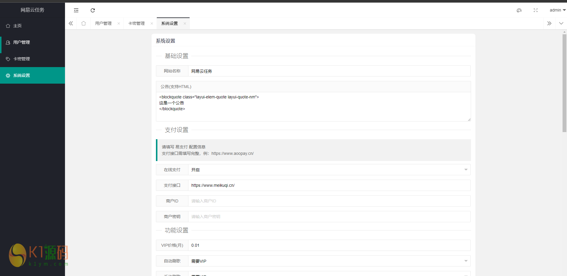 https://console.cloud.tencent.com/captcha/graphical申请一个图形验证,登录后台域名/admin 初始账户admin初始密码123456 然后系统设置把申请到的APPID 和App Secret Key,默认操作全部需要VIP可以在后台修改,建议手动签到和打卡无需VIP