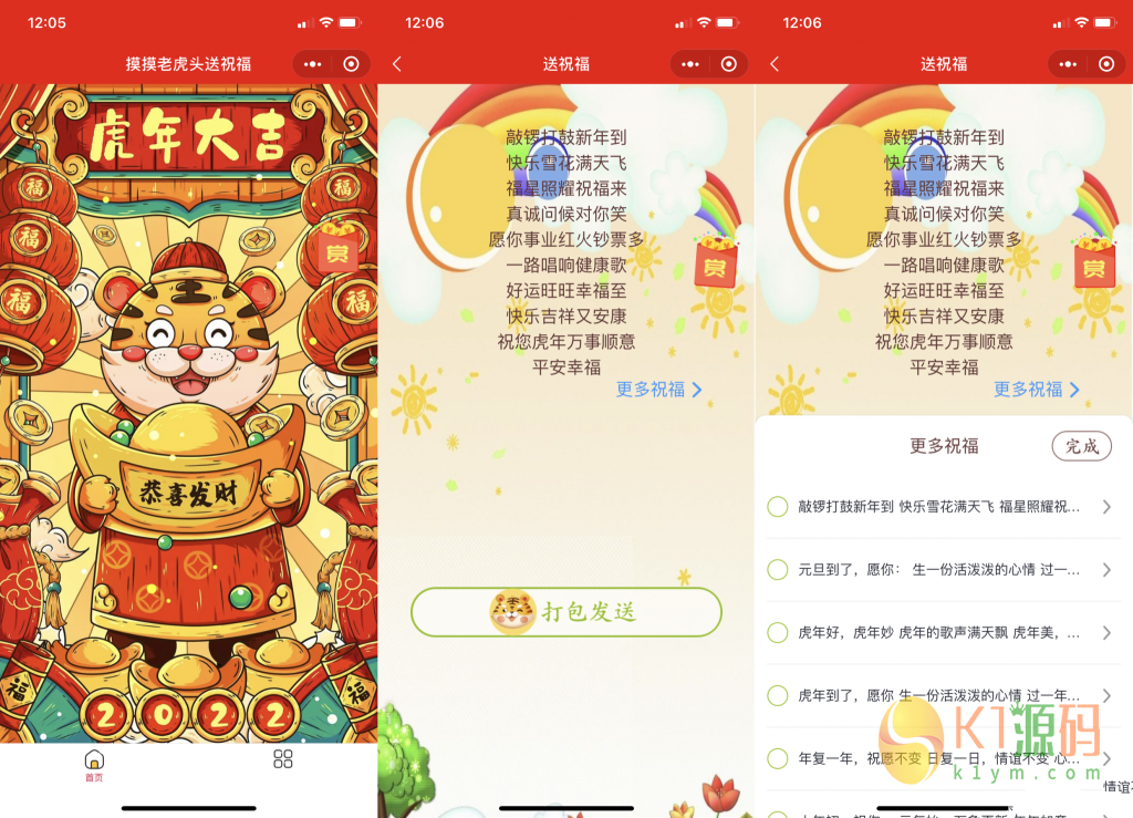 里面的背景图包括祝福语都已经修改成与虎年相关的内容了