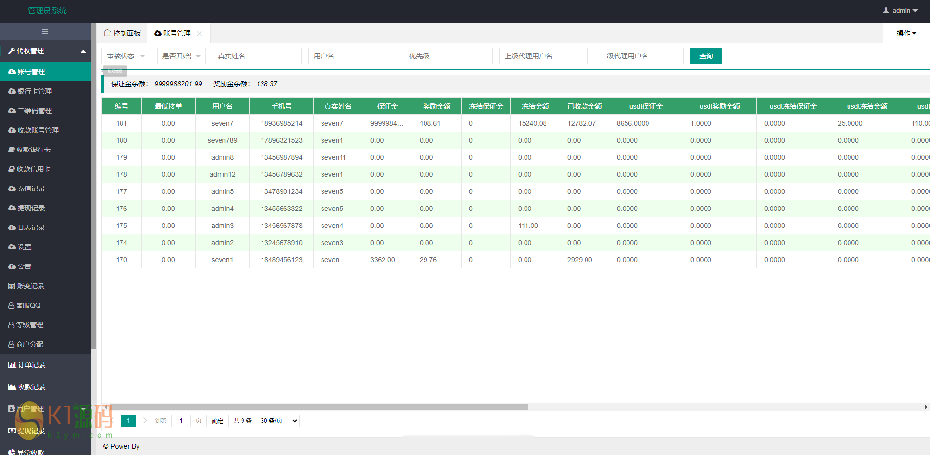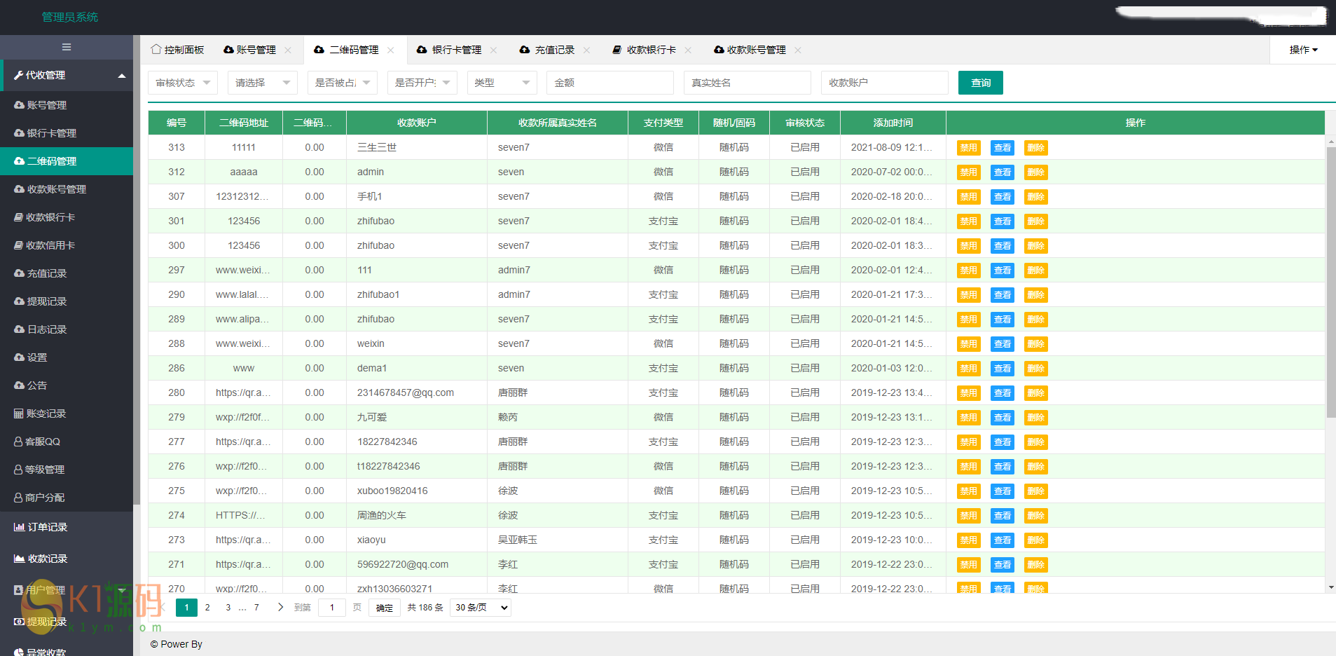 目测是一个码商系统支持支付宝、微信、银行卡、USDT支付 这个系统好像是需要对接其他的东西,没有看到前端在哪,好像只有一个后端系统。 声明:本站所有文章,如无特殊说明或标注,均为本站原创发布。任何个人或组织,在未征得本站同意时,禁止复制、盗用、采集、发布本站内容到任何网站、书籍等各类媒体平台。如若本站内容侵犯了原著者的合法权益,可联系我们进行处理。