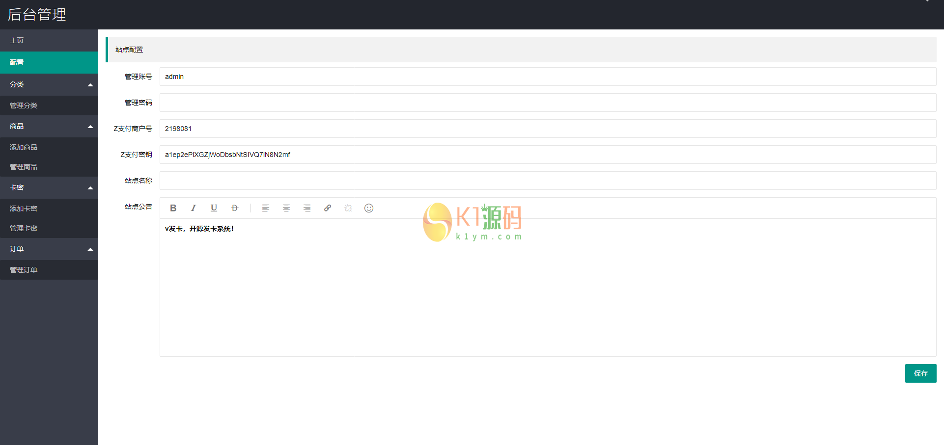 7、在后台-站点配置里填入您的商户号及密钥。传送门|点我传送到Z支付官网
