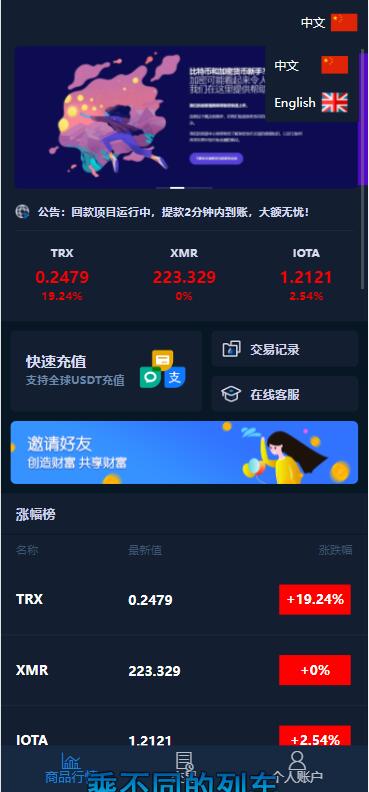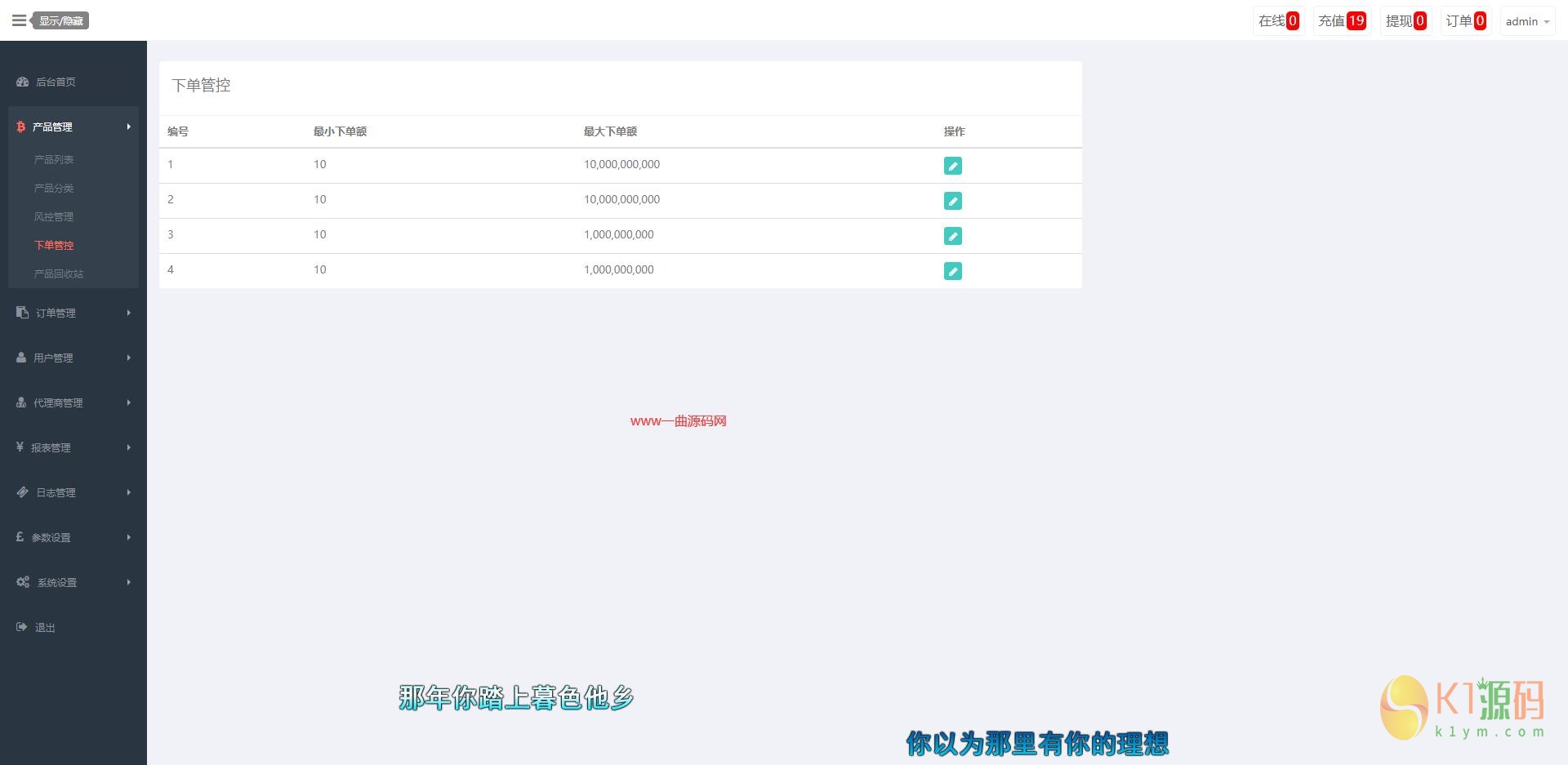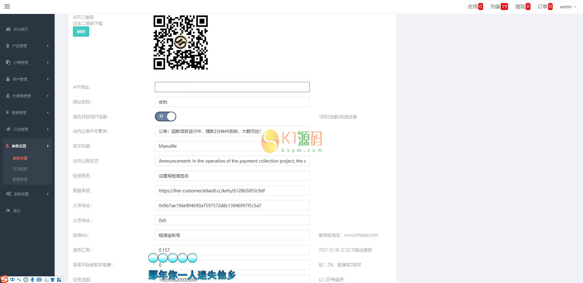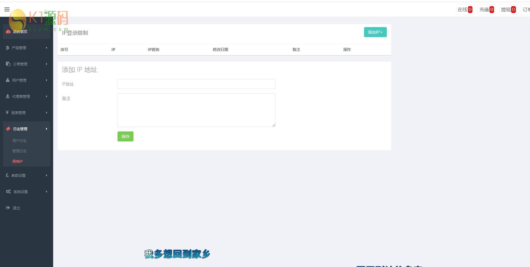 后台地址admin 账户密码 admin 123456 代理地址agent k线地址:coller_.html 配置地址:coller下的文件目录修改为自己的 声明:本站所有文章,如无特殊说明或标注,均为本站原创发布。任何个人或组织,在未征得本站同意时,禁止复制、盗用、采集、发布本站内容到任何网站、书籍等各类媒体平台。如若本站内容侵犯了原著者的合法权益,可联系我们进行处理。